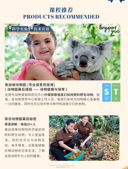 新加坡日间动物园-动物健与保育课程](约 60 分钟)观摩动物园募后工作,在野生动物保健和研究中心仔细观察兽医们如何照料野生动物。接着,在动物营养中心观察工作人员,看他们如何为动物园里的动物精心准备每一日的膳食,确保动物们都有摄取充分的营养。